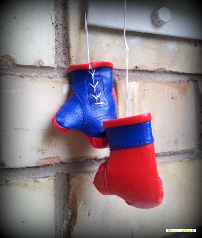 Bokso pirštinės suvenyrinės.Naujos.Dydis 7 cm.Iš dirbtinės odos kaina nuo-8,-lt.Natūralios odos nuo - 9,-lt.Puikiai uždedamos ant galinio vaizdo veidrodėlio automobilyje.
