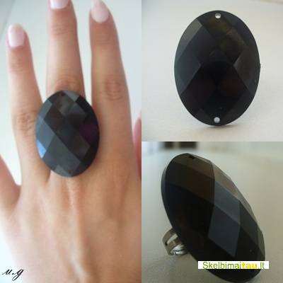 juodas blizgus žiedas, per pirštą dydis reaguliuojasi