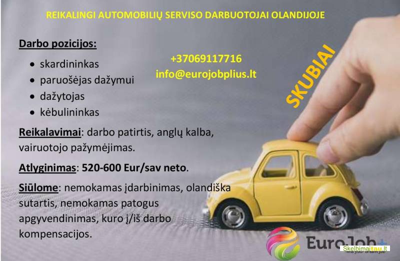 Pasiūlymas | Skelbimas neaktualusKontaktai:Miestas: Visi miestai+37069117716 info@eurojobplius.lt E-mail: Parašyti laišką autoriui |